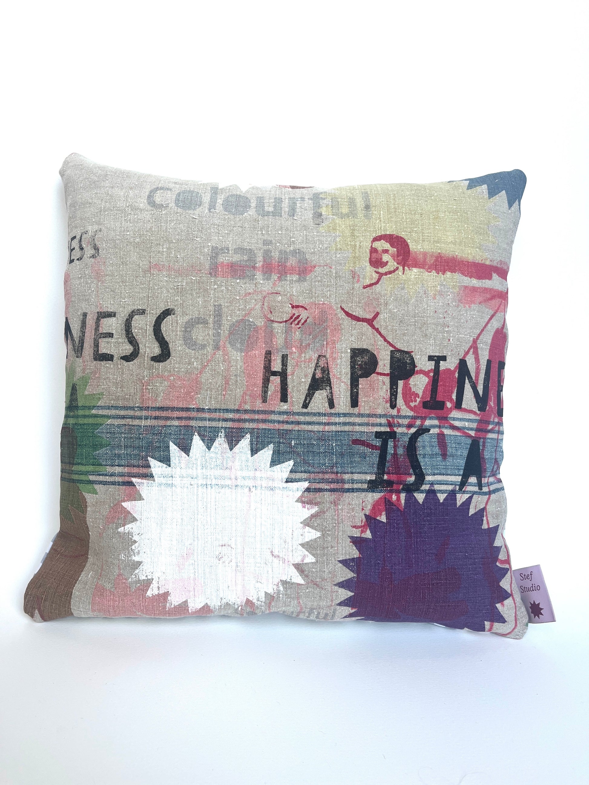 Jedes Kissen ist ein handgefertigtes Unikat mit sichtbaren Nähten und individuellen Materialkombinationen.