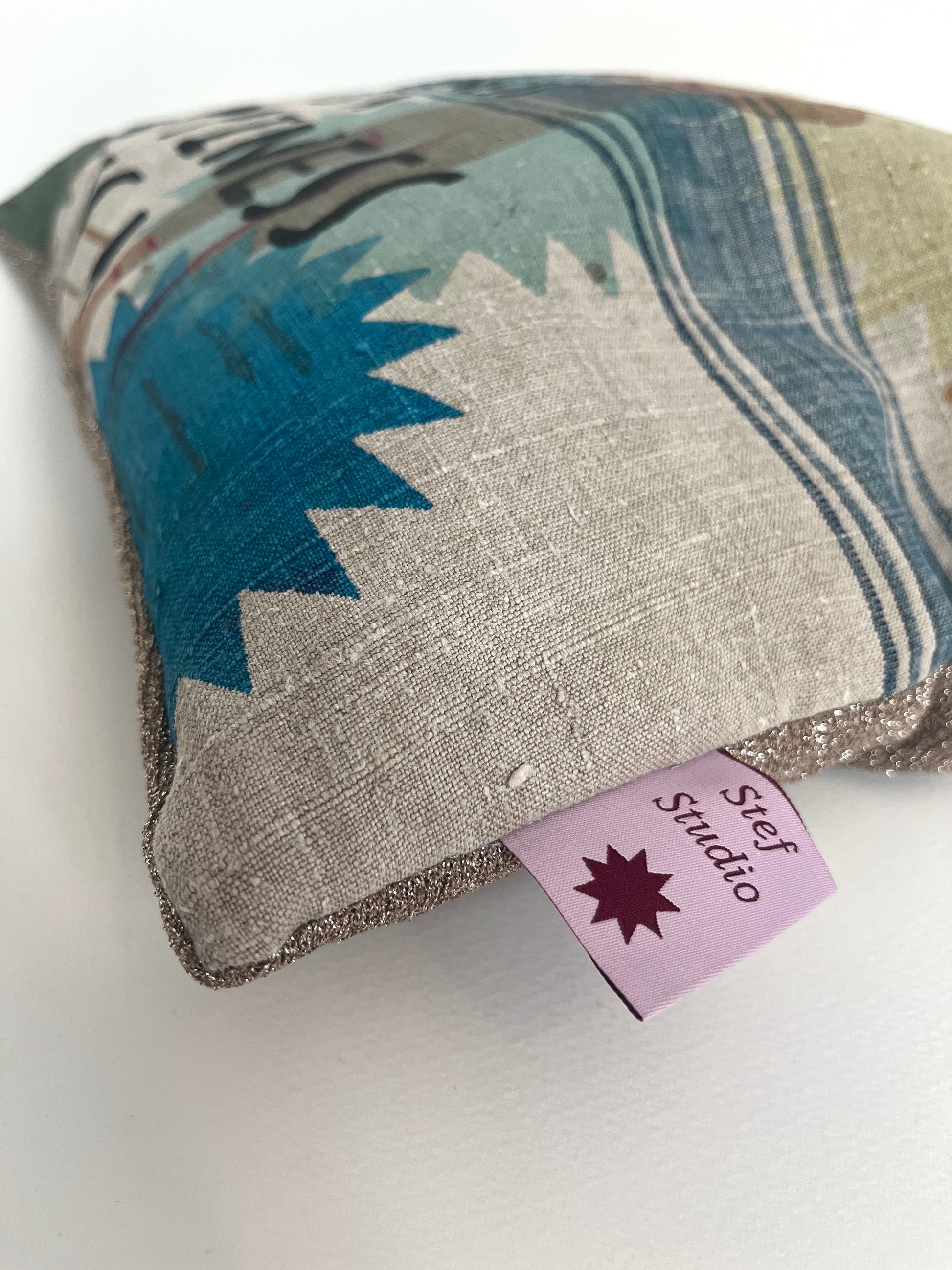 Dieses Leinenkissen ist ein handgefertigtes Unikat im Format 40 × 40 cm.