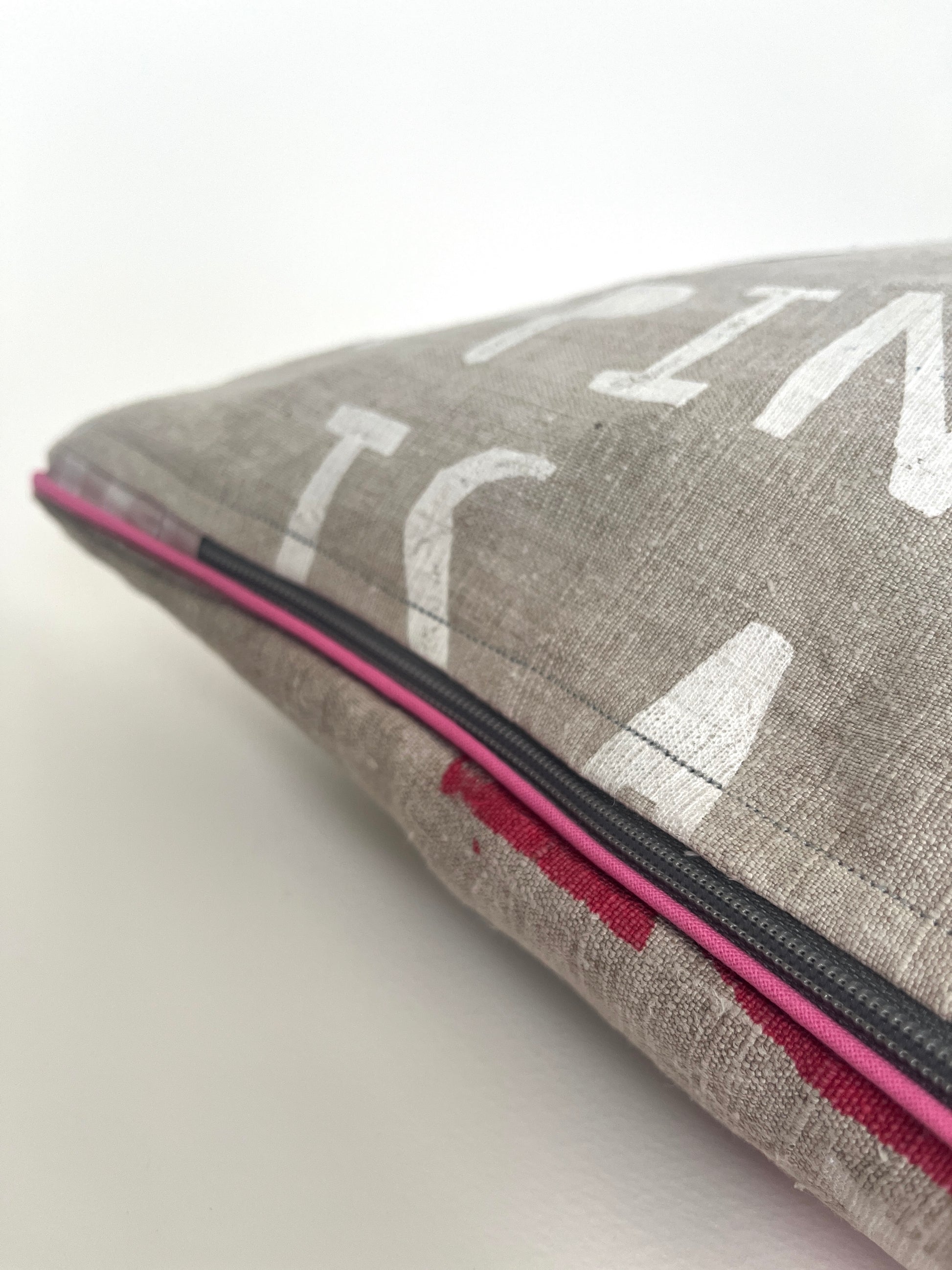 Jedes Kissen ist ein Einzelstück mit sichtbarer Handarbeit.