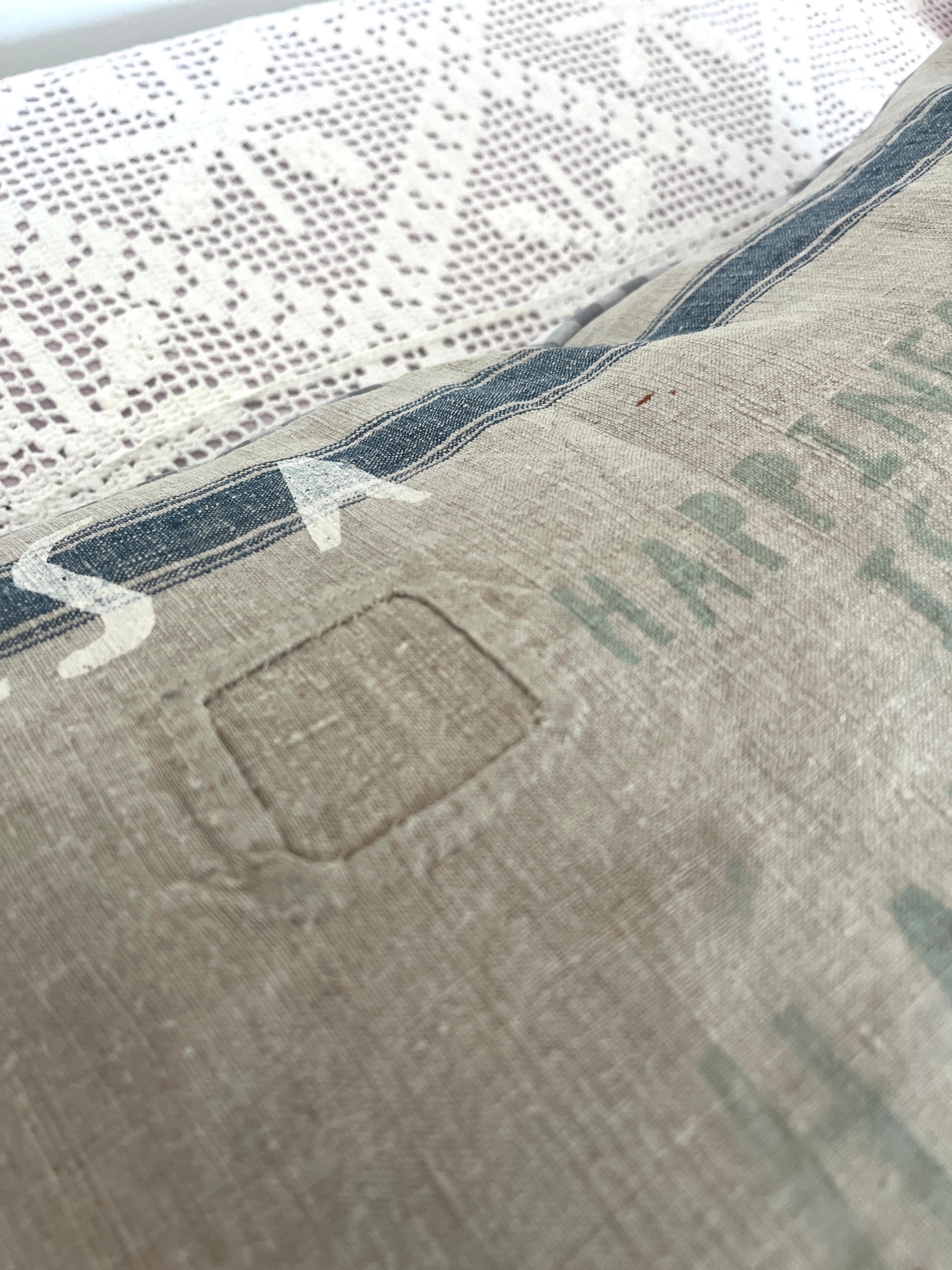 Dieses Kissen ist ein handgefertigtes Unikat aus Leinen.