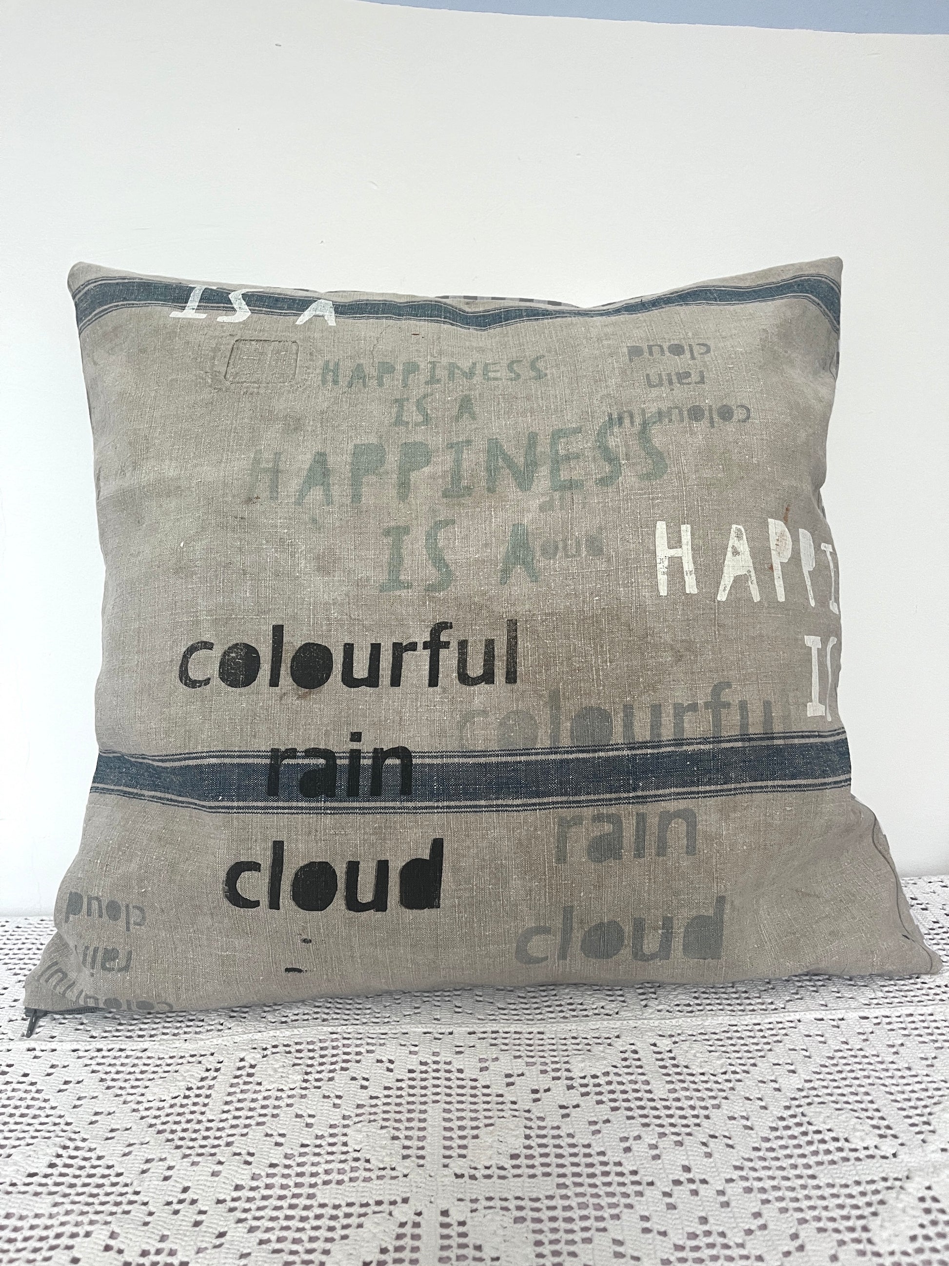 Leinenkissen „Raincloud“ · handbedrucktes Unikat