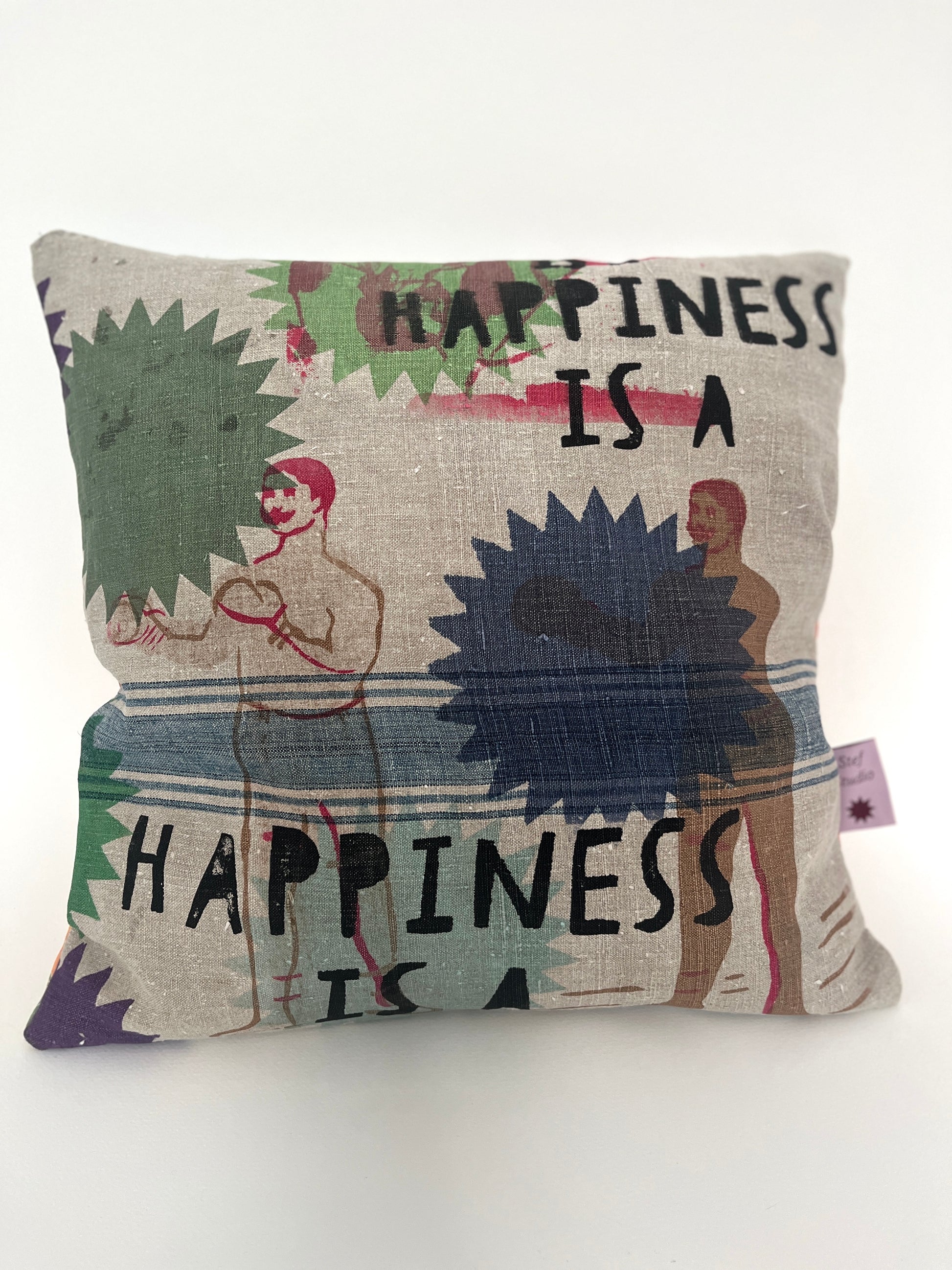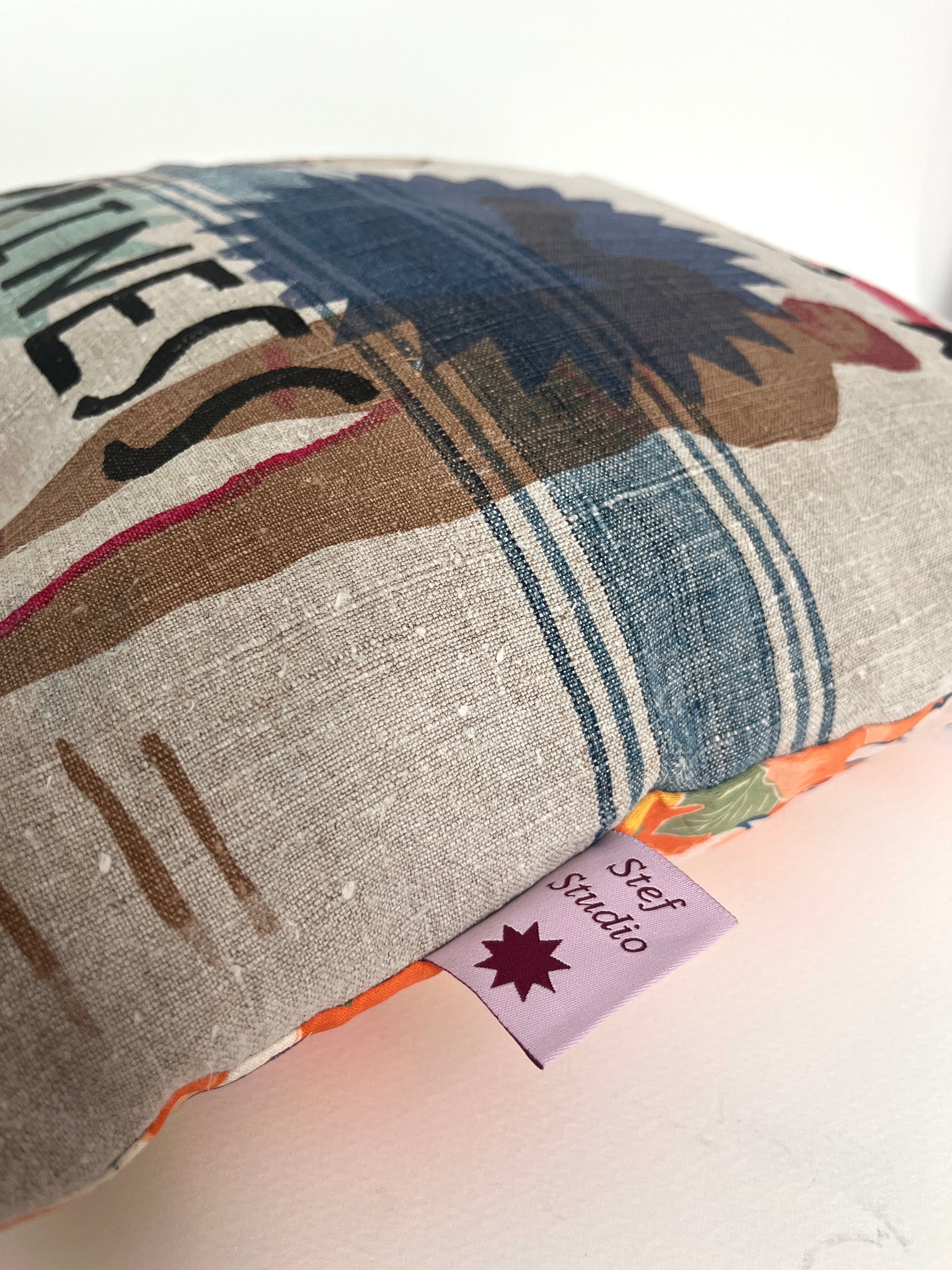 Leinenkissen „Webstreifen“ · Siebdruck · Unikat